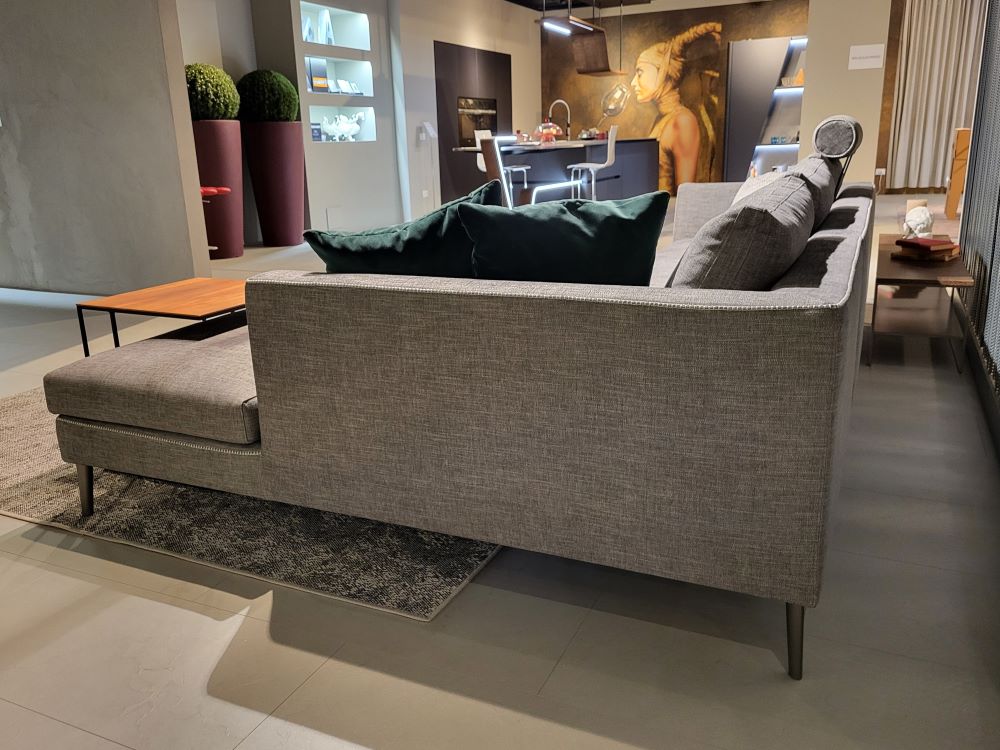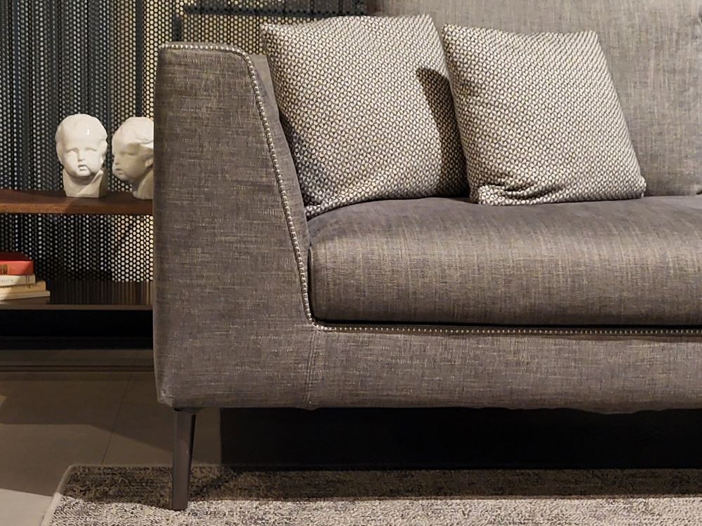 - Stile raffinato: Le impunture decorative a contrasto lungo i bordi esaltano le linee geometriche, donando un tocco di sartorialità e cura artigianale che non passa inosservato. Un dettaglio che trasmette qualità e attenzione ai particolari. Il rivestimento non cede ai compromessi ed il tessuto ricopre con continuità l’intera struttura, senza cuciture sulla schiena o materiali di ripiego al di sotto delle sedute.